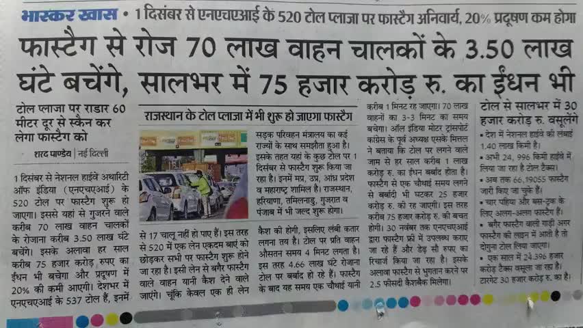 बीकानेर: फास्टेग लगाने से देश में हर साल 75 हजार करोड़ रूप बचेंगे