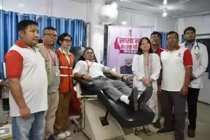 #SwasthNariSashaktParivar অভিয়ান অমসুং #SwachhataHiSeva2025 গী শরুক অমা ওইনা নেসনেল ভোলুন্তরি ব্লদ দোনেসন দে থৌরমদা রিজনেল ইন্সতিতুৎ ওফ মেদিকেল সাইন্সেস (রিমস) ইম্ফালগী দিরেক্তর দোক্তর জি. সুনিল কুমার শর্মনা লুচিংদুনা ঈ পীখ্রে।
