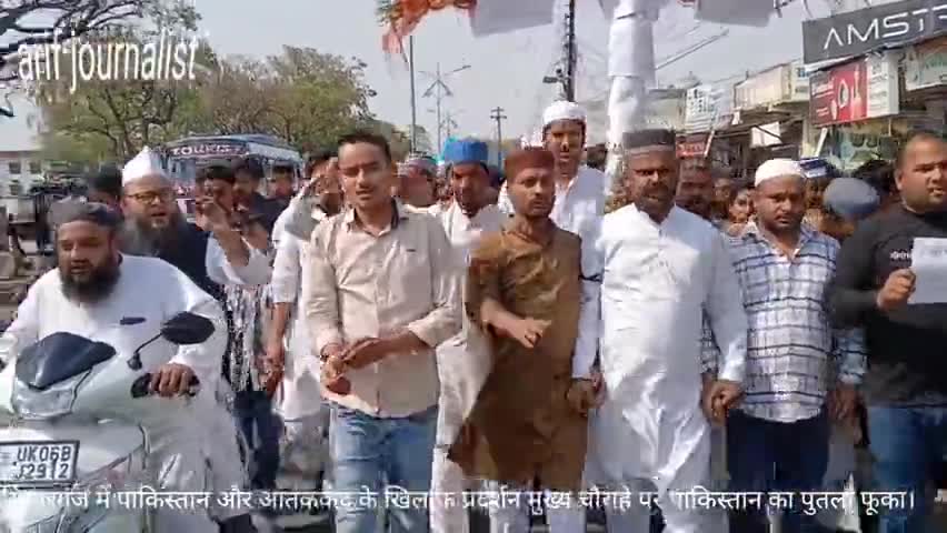 22 अप्रैल को पहलगाम में जो पाकिस्तान के द्वारा निहत्ते निर्दोष लोगों की निर्मम हत्या की गई उसके विरोध में मुस्लिम समाज ने पाकिस्तान व आतंकवाद का पुतला फूंकर काली पट्टी बांधकर विरोध दर्ज कराया
