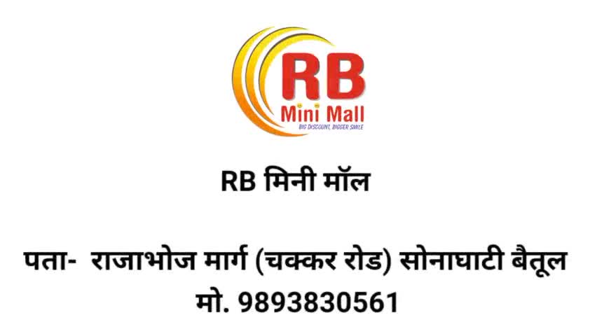RB मिनी मॉल सहयोगी प्रतिष्ठान - अनुराग टेंट सप्लायर्स पता- राजाभोज मार्ग (चक्कर रोड) सोनाघाटी बैतूल मो. 9893830561