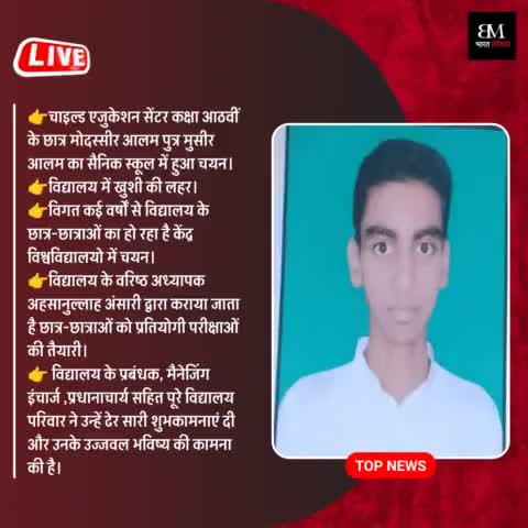 चाइल्ड एजुकेशन सेंटर कक्षा आठवीं के छात्र का सैनिक स्कूल में हुआ चयन, विद्यालय में खुशी की लहर