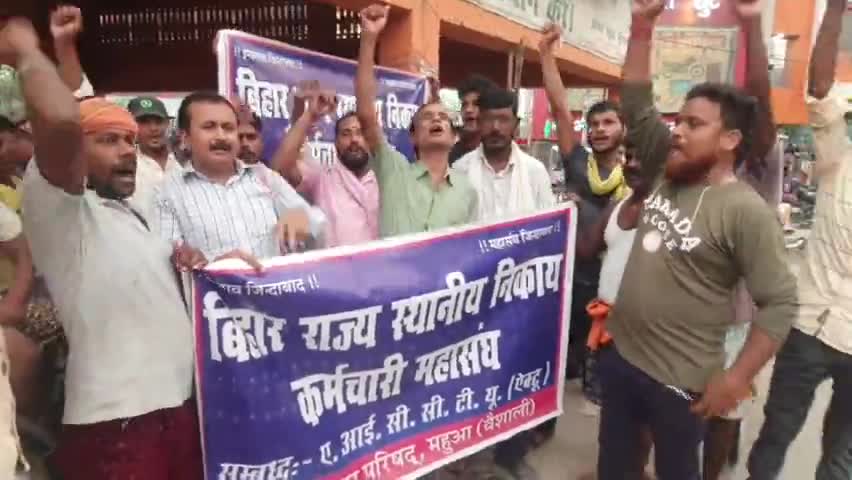 महुआ: महुआ में सफाई कर्मचारी गए हड़ताल पर, मांगों को लेकर सफाई कर्मियों ने निकाला जुलूस