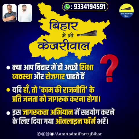 क्या आप बिहार में ही अच्छी शिक्षा व रोजगार चाहते हैं? यदि हाँ, तो ऑनलाइन फॉर्म भरें: https://forms.gle/tpBmqm78T3SMDAx89
