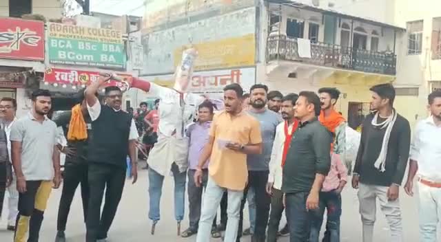 कांग्रेस नेता खुर्शीद की पुस्तक मैं विवादित टिप्पणी पर हिंदू संगठनों का विरोध प्रदर्शन