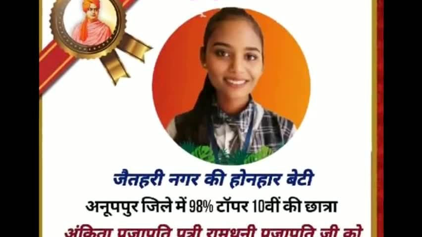 जैतहरी: जैतहरी नगर की होनहार बेटी अंकिता प्रजापति ने दसवीं में 98% लाकर किया जिला टॉप
