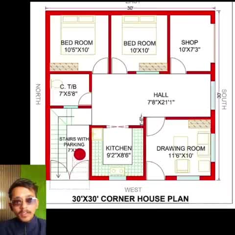 30x30 प्लॉट डिज़ाइन (शॉप + रेसिडेंशियल) शॉप: 10x7.3 फीट का वाणिज्यिक क्षेत्र, सामने की ओर। रहने का क्षेत्र: 2 बेडरूम: आरामदायक और हवादार। ड्रॉइंग रूम: मेहमानों के लिए। हॉल और किचन: खुले और कार्यात्मक डिज़ाइन के साथ। सीमित जगह में परिवार और व्यवसाय दोनों के लिए आदर्श।