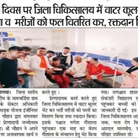 जन्मदिवस के उपलक्ष्य पर हॉस्पिटल में रक्तदान कर मरीजों को फल वितरण किया एवं वाटर कूलर भेंट किया....