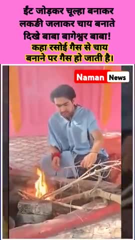 ईंट जोड़कर चूल्हा जलाकर चाय बनाते दिख#बागेश्वर_बाबा कहा रसोई गैस से चाय बनाने पर गैस हो जाती है! #bababageswar
