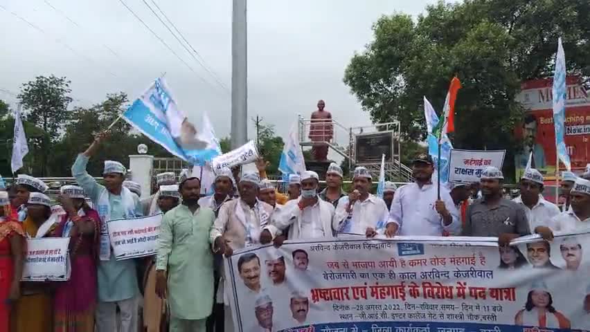 बस्ती: आम आदमी पार्टी की मंहगाई और बेरोजगारी को लेकर जीआईसी इंटर कॉलेज, से पदयात्रा पक्के गांधीनगर, कंपनी बाग चौराहा, होते हुए शास्त्री चौक तक सफलतापूर्वक संपन्न हुआ।