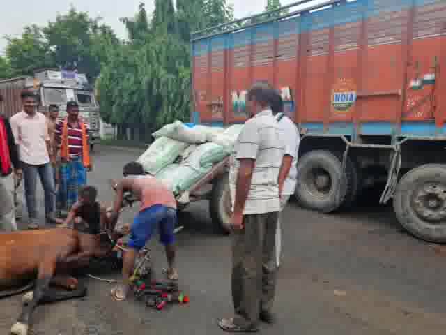 नगरा: अफौर गांव के समीप से गढ्ढे से बचने में टेम्पो ने टमटम में मारी टक्कर,चालक व घोड़ा को आई चोट
