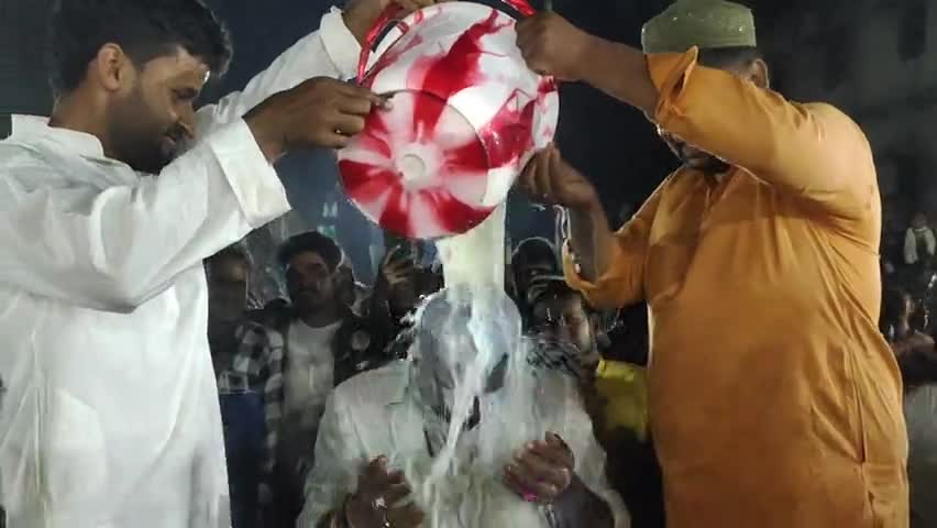 बैरगनिया प्रखण्ड चकवा में खान क्रिकेट क्लब द्वारा नाईट क्रिकेट मैच में दूध से स्नान करा कर स्वागत किया गया टीम के द्वारा