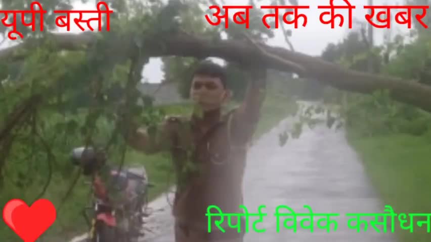 बस्ती: गौर से हलुआ जाने वाले मार्ग पर बिरऊपुर में इस पार से उस पार पूरे सड़क पर पेड़ टूट कर गिरा हुआ था