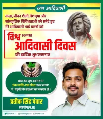 9 अगस्त विश्व आदिवासी दिवस की सम्पूर्ण देशवासियों को हार्दिक बधाई शुभकामनाएं... आप भी एक पौधा अवश्य लगाए💐