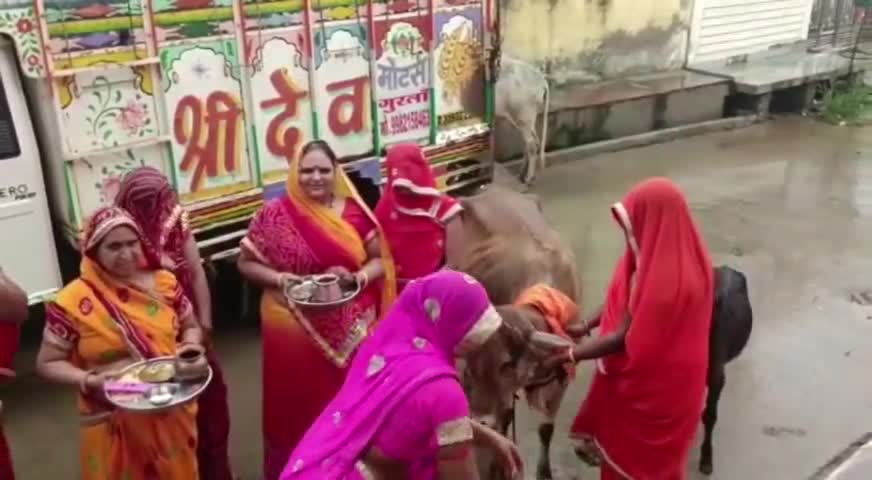 बनेड़ा: रायला में बच्छ बारस पर गाय व बछड़े की पूजा कर सुहागिन महिलाओं ने पुत्र के दीर्घायु होने की करी कामना
