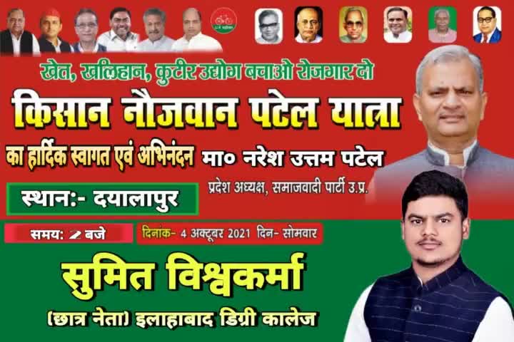 सूचना दिनांक 04/10/2021 समय:- 2 बजे स्थान :- दयालापुर जंघई रोड पर किसान नौजवान पटेल यात्रा में श्री नरेश उत्तम पटेल