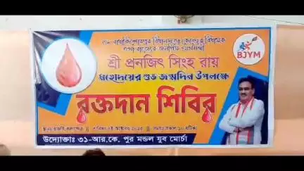 রাজ্যের অর্থ মন্ত্রী প্রনজিৎ সিংহ রায়ের জন্মদিন। দিনটি কে সামনে রেখে ৩১ রাধা কিশোর পুর যুব মোর্চার উদ্দ্যেগে রাজষী কলা ক্ষেত্রে অনুষ্ঠিত হয় এক রক্ত দান শিবির। উপস্থিত ছিলেন মন্ত্রী প্রনজিৎ সিংহ রায়, উদয়পুর পৌর পরিষদের চেয়ারম্যান শীতল মজুমদার, বিজেপির গোমতী জেলার সভানেত্রী সবিতা নাগ,৩১ রাধা কিশোর পুর মন্ডল সভাপতি সানি সাহা সহ যুব মোর্চার নেতৃত্বরা। মন্ত্রী বলেন, রক্ত দান একটি মহৎ দান।এক বোতল রক্ত একটি মুমূর্ষু রোগীর প্রাণ বাঁচাতে পারে।