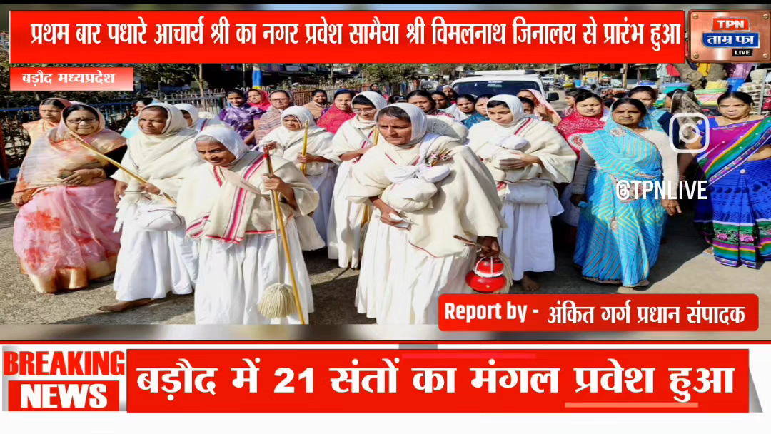 बड़ौद में 21 संतों का मंगल प्रवेश हुआ बड़ौद। धर्म नगरी बड़ौद में प्रथम बार पधारे आचार्य श्री का नगर प्रवेश सामैया