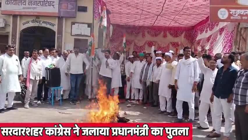 सरदारशहर कांग्रेस ने जलाया नरेंद्र मोदी का पुतला