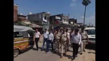 बड़हरिया: बड़हरिया में जिला प्रशासन की अध्यक्षता में निकाला गया फ्लैग मार्च