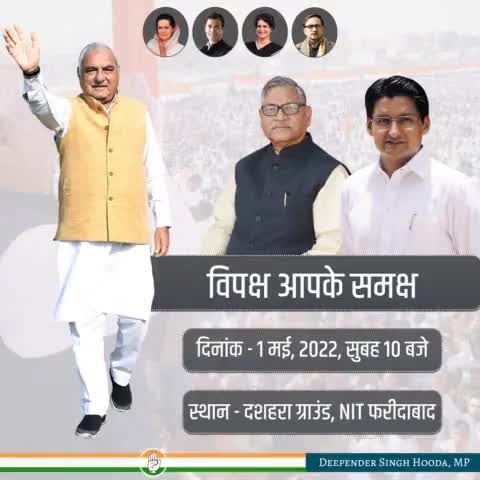 हरियाणा कांग्रेस का 'विपक्ष आपके समक्ष' कार्यक्रम जारी है। प्रदेश के हर जिले में हम आपके पास पहुंचेंगे। इसी क्रम में विपक्ष आपके समक्ष का पांचवां पड़ाव दिनांक - 1 मई, रविवार