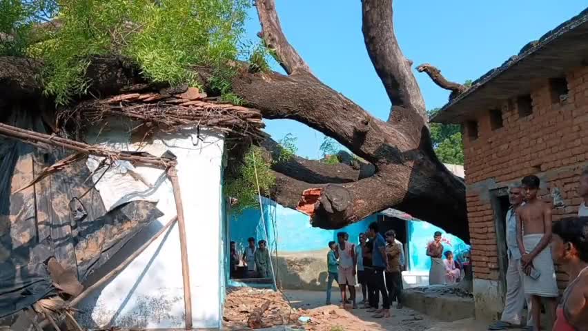कुलपहाड़: जैतपुर के एक मुहाल में विशालकाए नीम का पेड़ गिरने के कारण कई मकान हुए धराशाही वही बाल बाल बचे स्थानीय लोग