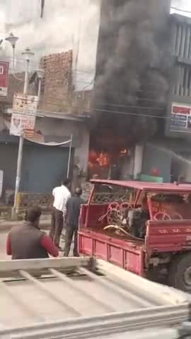 मुग़लसराय जी टी रोड पर एक व्यापारी की दुकान में लगी भयंकर आग , आग लगने की वजह से दो गैस के टंकी का धमाका भी हुआ।
