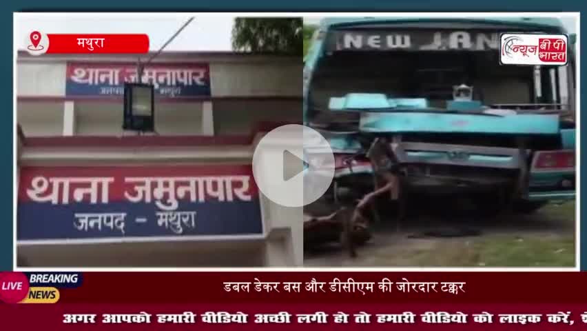 जमुनापार में सड़क हादसा: बस और डीसीएम में जोरदार भिड़ंत, 40 यात्रियों की जान बची, चालक घायल #जमुनापार #सड़क #हादसा #बस