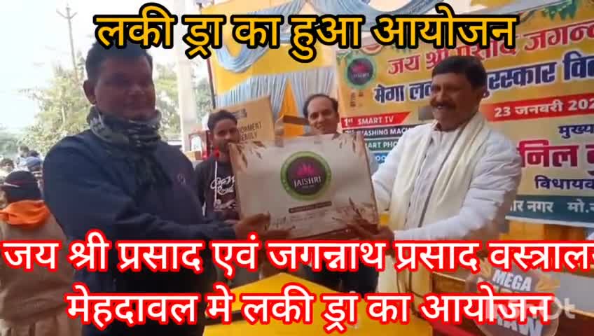 मेंहदावल विधायक अनिल त्रिपाठी द्वारा निकाला गया लकी ड्रा जय श्री प्रसाद जगन्नाथ प्रसाद वस्त्रालय पर हुआ कार्यक्रम