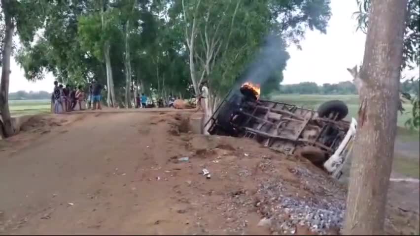 ରାସ୍ତା କଡ଼କୁ ଓଲଟି ପଡିଲା ଗୋରୁ ବୋଝେଇ ପିକ ଅପ ଭ୍ୟାନ। ଯାଜପୁର ଦଶରଥପୁର ବ୍ଲକ ନନ୍ଦୀପୁର - ଝୁମ୍ପୁରୀ ରାସ୍ତା ର ମଧ୍ୟସ୍ଥଳୀ ତରାଙ୍ଗ ସାଗରପୁର ଠାରେ ବିଳମ୍ବିତ ରାତି ରେ ଘଟିଛି ଏହି ଦୁର୍ଘଟଣା। ଉକ୍ତ ଭ୍ୟାନ ରେ ୭ ଟି ଗୋରୁଥିଲା ବେଳେ ୨ ଟି ଗୋରୁ ଙ୍କର ଘଟଣା ସ୍ଥଳରେ ମୃତ୍ୟୁ ହୋଇଛି। ଓଲଟି ପଡ଼ିଥିବା ପିକଅପ ଭ୍ୟାନ ରେ କେହି ଦୁର୍ବୁର୍ତ୍ତ ନିଆଁ ଲଗେଇ ଦେଇଥିଲେ। ଖବର ପାଇ ଦଶରଥପୁର ଅଗ୍ନିଶମ ବାହିନୀ ନିଆଁ ଆୟତ କରିଥିବା ବେଳେ ଦଶରଥପୁର ପୋଲିସ ଏହାର ତଦନ୍ତ ଚଳାଇଛି। ଗୋରୁ ସବୁ ବିଂଝାରପୁର ରୁ ଭଦ୍ରକ ଯାଉଥିବା ଅନୁମାନ କରାଯାଉଛି।