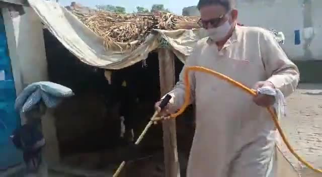 हापुड़: ग्राम upeda की नवनिर्वाचित प्रधान श्रीमती ओमवती चौधरी के पति चौधरी amarpal सिंह जी ने ग्राम upeda में सैनिटाइजर किया ।।