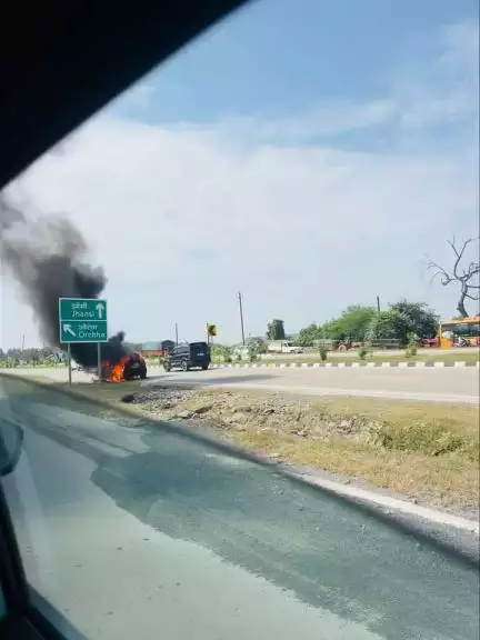 jhansi-orchha : धूँ धू कर जल गई क्रेटा कार