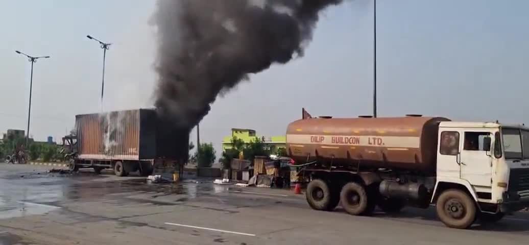 कुलगो टोल प्लाजा के सामने जनरेटर से भरी कंटेनर में अचानक आग लग गई