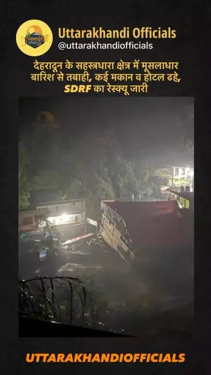 देहरादून के सहस्त्रधारा क्षेत्र में मूसलाधार बारिश से तबाही, कई मकान व होटल ढहे, SDRF का रेस्क्यू जारी”