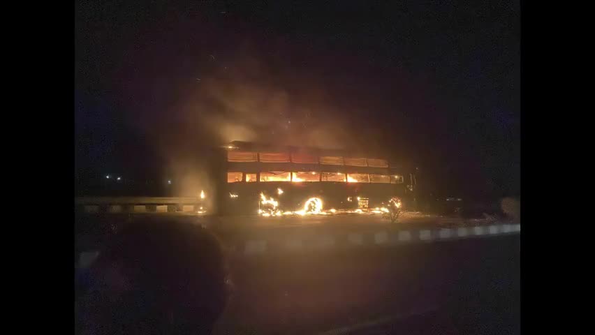पिपरा कोठी ओवर ब्रिज पर बस में लगा आग लगभग 10 बजे बुधवार रात पता चला है के किसी को भी कुछ है हुआ है