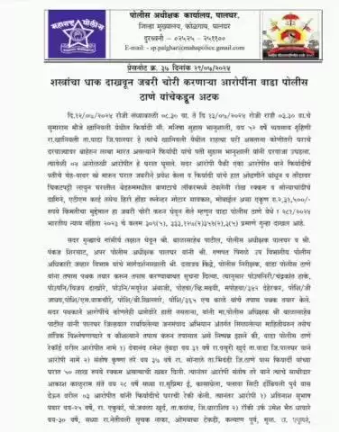 शस्त्राचा धाक दाखवून जबरी चोरी करणाऱ्या टोळीला वाडा पोलिसांकडून अटक.