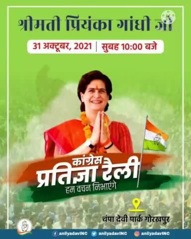 इकौना: आज प्रियंका गांधी जी गोरखपुर से पूर्वांचल में हुंकार भर रही है। आप सब वहा पहुंचे।