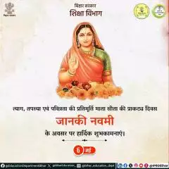 त्याग, तपस्या एवं पवित्रता की प्रतिमूर्ति माता सीता की प्राकट्य दिवस जानकी नवमी के अवसर पर हार्दिक शुभकामनाएं। #जानकी_नवमी #BiharEducationDept