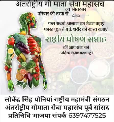 अंतर्राष्ट्रीय गौ माता सेवा महासंघ की तरफ से राष्ट्रीय पोषण दिवस की हार्दिक शुभकामनाएं फास्ट फूड ना खाएं फल सब्जी खाएं