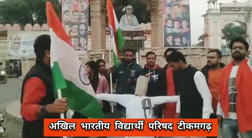 तिरंगे के सम्मान में। ABVP टीकमगढ़ मैदान में।। राकेश टिकैत ओर योगेन्द्र यादव का पुतला जलाया गया #फर्जी_किसान @