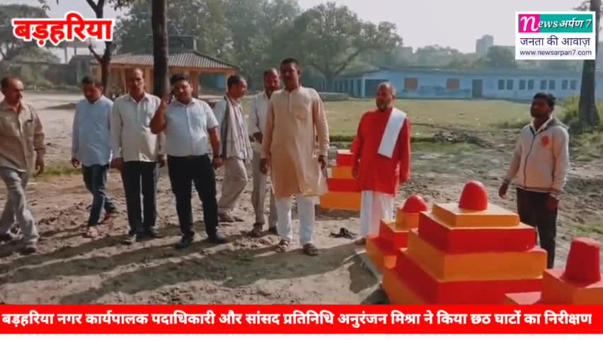 बड़हरिया नगर कार्यपालक पदाधिकारी और सांसद प्रतिनिधि अनुरंजन मिश्रा ने किया छठ घाटों का निरीक्षण।