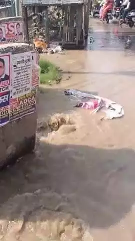 kiradi chowk high time 2:40 pm booster pipe line damege road par pani pani road par 2hafte me drar