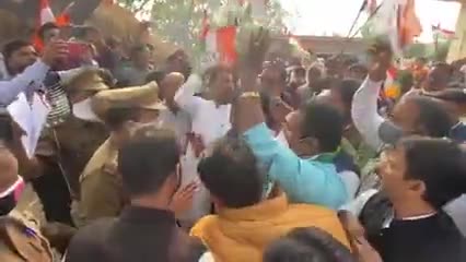 जौनपुर के मछली शहर में कांग्रेस की तिरंगा यात्रा को रोकती पुलिस फैसल हसन, सत्यवीर सिंह समेत सैकड़ों कार्यकर्ता गिरफ्तार