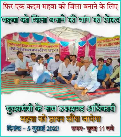 #फिर_एक_कदम_महवा_को_जिला_बनाने_के_लिये #महवा_को_जिला_बनाओ की मांग को लेकर कल दिनांक 05जुलाई2023 को सुबह 11:00 बजे मुख्यमंत्री के नाम उपखण्ड अधिकारी महवा को #महवा_को_जिला_बनाओ_सघर्ष_समिति के तत्वावधान में