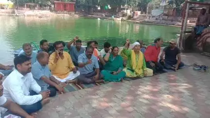 वाराणसी शकुलधारा पोखरा पर धरना भेलुपुर वार्ड 51पार्षद अशोक सेठ. नगीना पांडे उपस्थिति