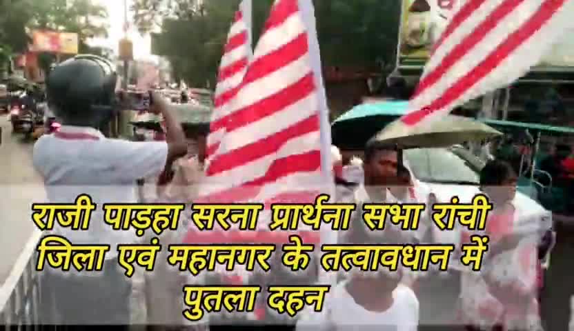 रांची में सरना झंडा के विरोधियों का पूतला फूंका