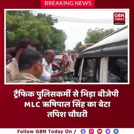 #हाथरस ट्रैफिक पुलिसकर्मी से भिड़ा BJP MLC का बेटा, वीडियो वायरल उत्तर प्रदेश के हाथरस जिले का एक वीडियो खूब वायरल हो रहा है. इसमें बीजेपी एमएलसी ऋषिपाल सिंह का बेटा ट्रैफिक पुलिसकर्मी से भिड़ गया. सड़क पर गाड़ी हटाने के लिए कहने पर अलीगढ़ से भाजपा MLC ऋषिपाल सिंह के बेटे चौधरी तपेश की ट्रैफिक पुलिस से तू-तड़ाक हो गई. चौधरी तपेश ने सिपाही को बोला- "चल हट, भाग यहां से". कार पर विधायक लिखा हुआ था और भाजपा का झंडा लगा था और अंदर एक गनर भी मौजूद था. #gbntoday #breakingnews #viralvideo