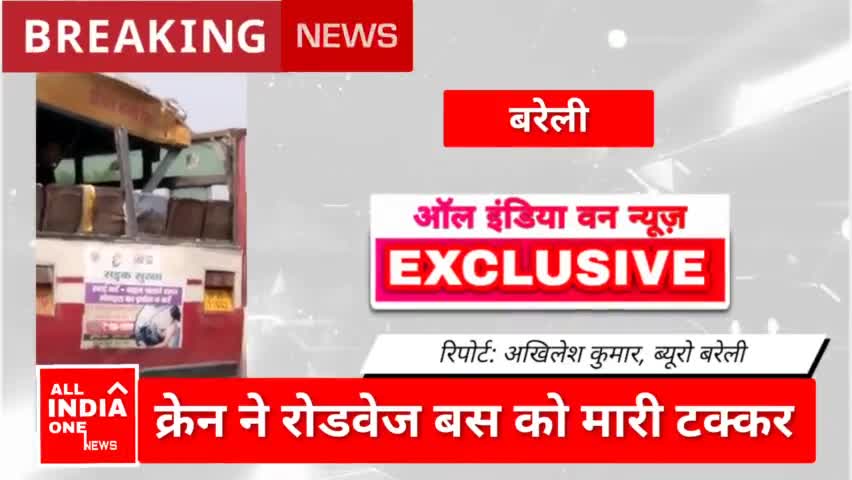 क्रेन ने बस को मारी टक्कर दो घायल #aionews01 #rajatawasthii #aiotv