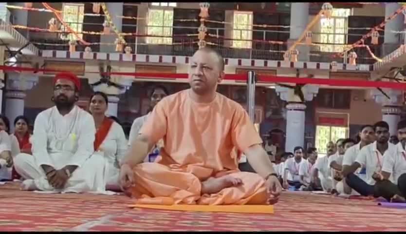योग दिवस के दिन प्रधानमंत्री मोदी के संदेश को सुनने के बाद गोरखनाथ मंदिर परिसर में योगा करते सीएम योगी आदित्यनाथ..#news