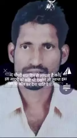 गोविंद चौधरी सात दिन से लापता है कोई भी व्यक्ति इस आदमी को कहि भी देखोगे तो तुरन्त इस नंबर पर कॉल करें देना 9238218274@#