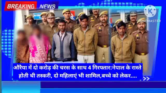 औरैया में दो करोड़ की चरस के साथ 4 गिरफ्तार:नेपाल के रास्ते होती थी तस्करी, दो महिलाएं भी शामिल, बच्चे को लेकर आए थे